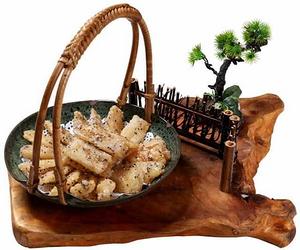 色泽金黄、外酥内嫩、又甜又香、肥肉肥而不腻,是一道下酒好菜、价廉物美、造型美观大方。